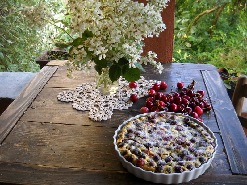 Frutti rossi di fine primavera dal giardino alla tavola con il classico clafoutis alle ciliegie.