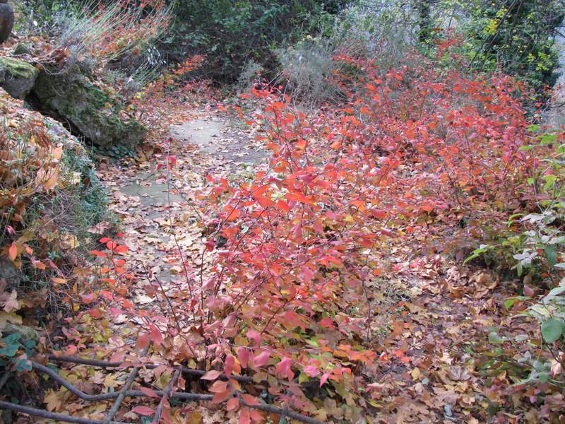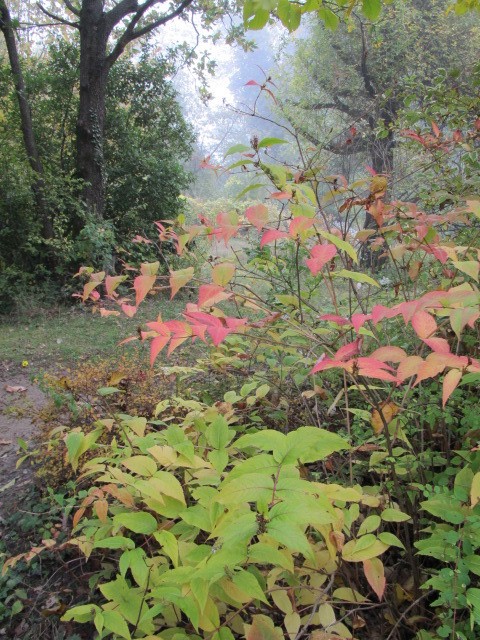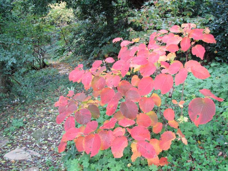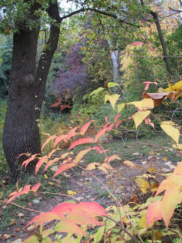 e, all’ingresso della RADURA DELLE LUCCIOLE, si accende la fiamma rosso arancio di Viburnum furcatum.