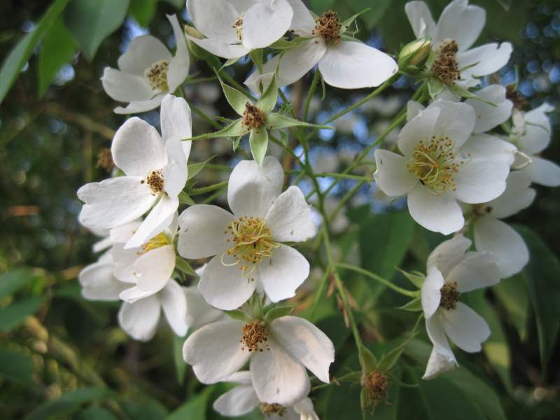 I piccoli fiori profumati di Rosa filipes “Kiftsgate”…