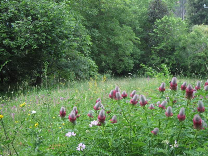 Trifolium rubens, dalla pianta madre, introdotta nel prato del ciliegio, si va diffondendo sempre di più.