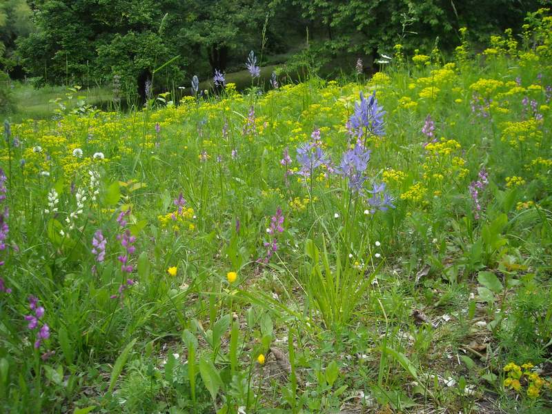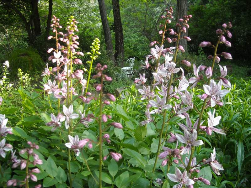 Camassia aesculenta è invece una recente introduzione nel prato del ciliegio: un omaggio a Christopher Lloyd.