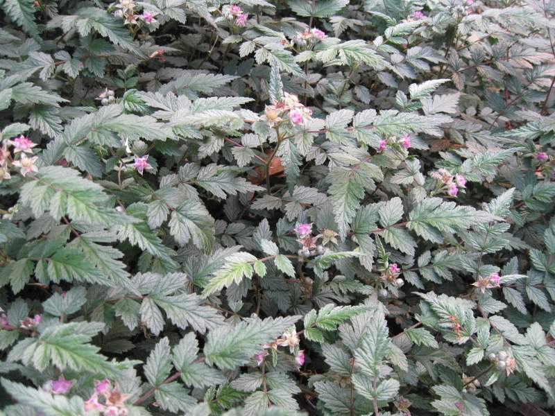 Le interessanti foglie verdi grigio del Rubus tibetanus…
