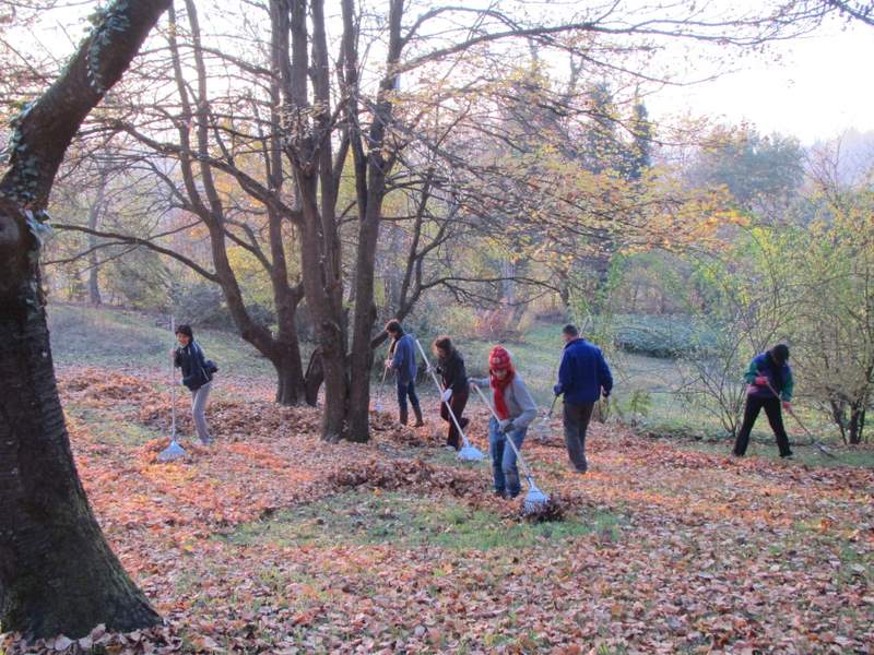 I volontari del giardino durante il “ GIORNO FOGLIA” un appuntamento che diventera’ tradizionale.