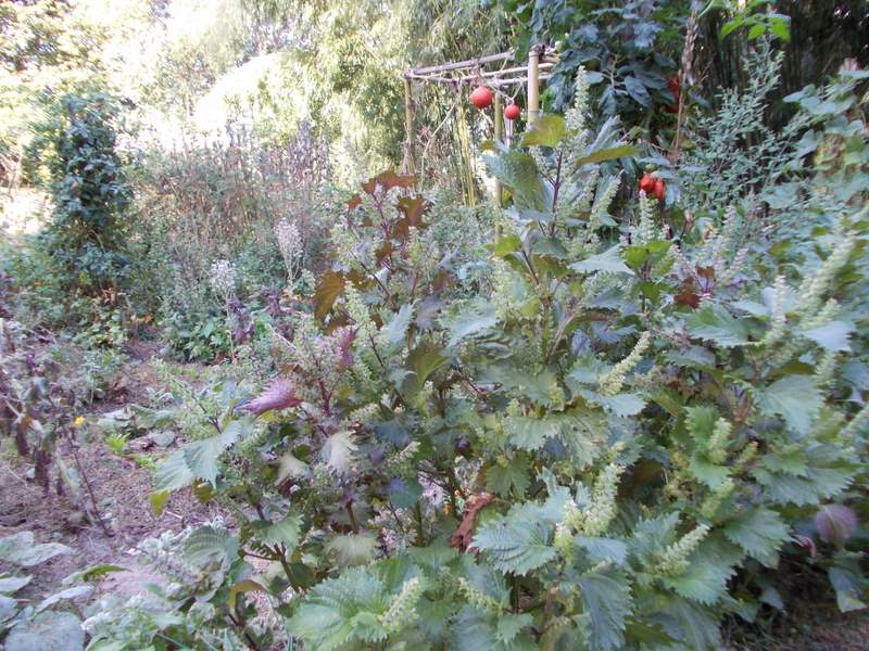 Perilla frutescens (Shiso, sulla tavola dei giapponesi), altra esuberante, ha ormai preso dominio dell’orto-giardino…