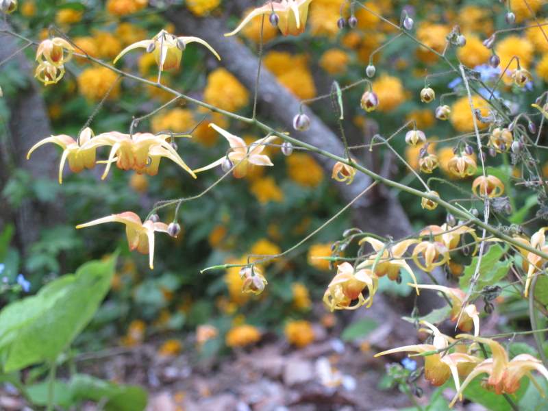 Magica leggerezza di Epimedium grandiflorum come strane, minuscole cicogne in volo…