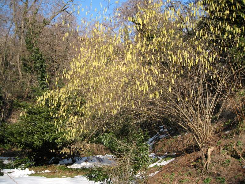 Il nocciolo in fiore crea una cascata di luce al limitare del GIARDINO DI FRESCURA…