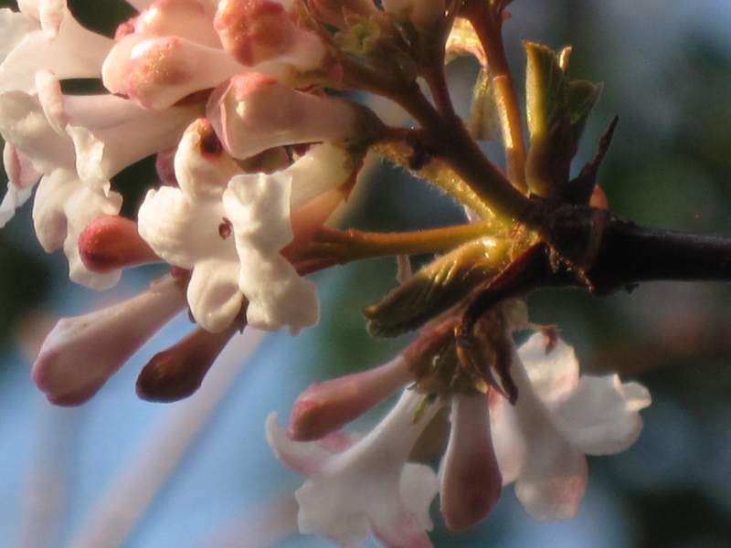 I leggeri corimbi rosati di Viburnum fragrans impreziosiscono (e profumano!) la RADURA DELLE LUCCIOLE.