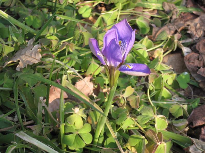 Al riparo del muro della grotta Iris unguicularis, mediterranea profumata, fiorisce nonostante il