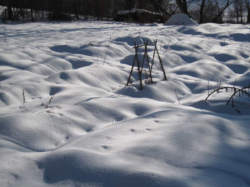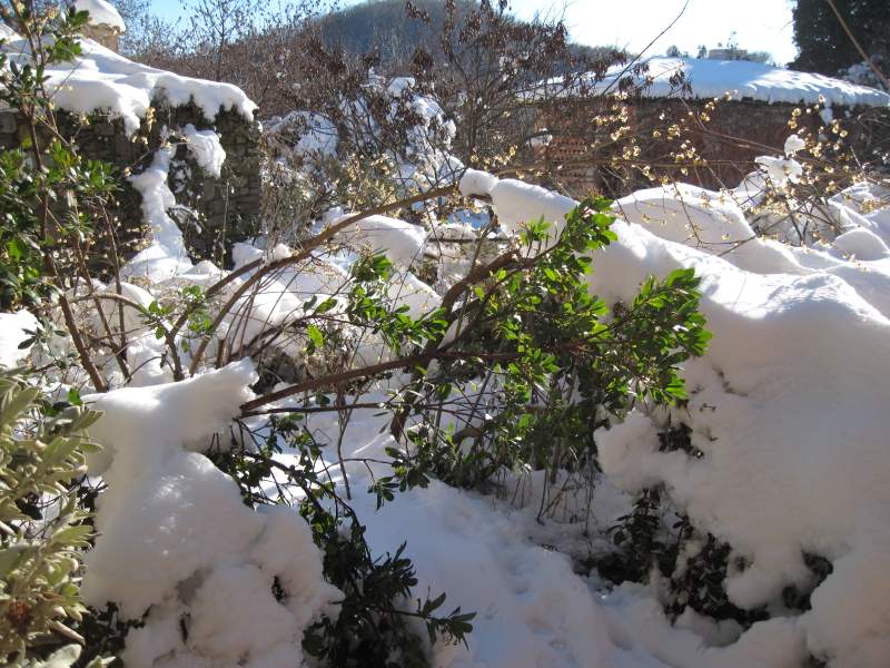 Nell’orto giardino la neve regala alle aiuole addormentate morbide rotondità.