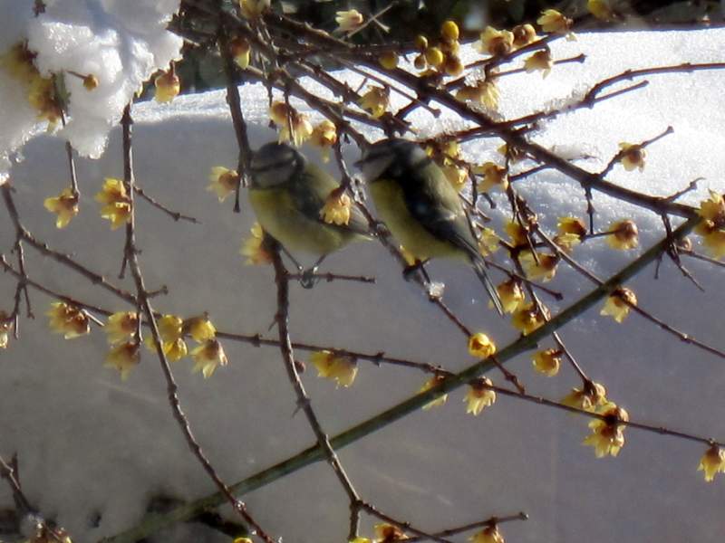 La nevicata ha abbassato i rami già in fiore del Chimonanthus praecox…